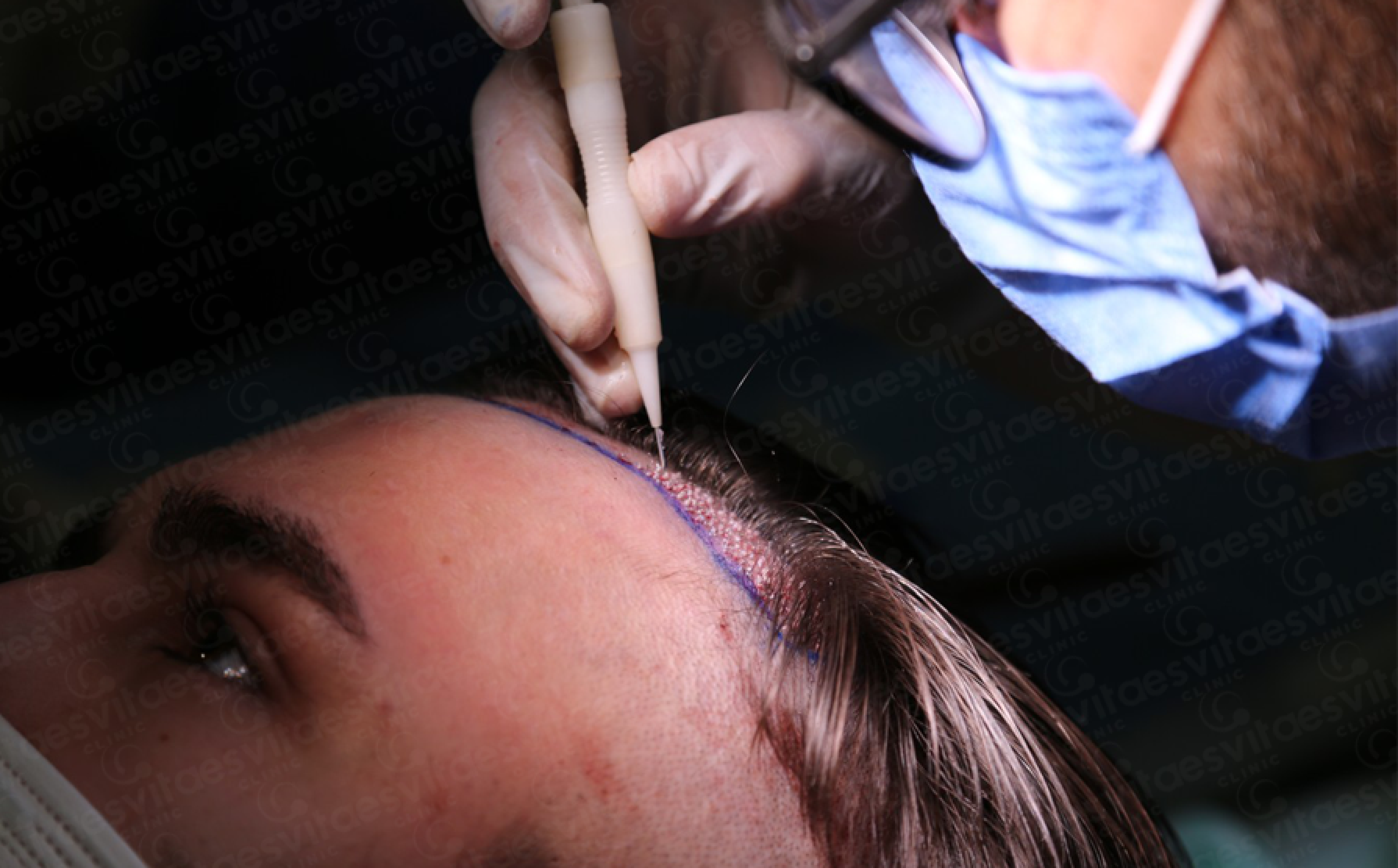 On the day of the procedure, local anesthesia is applied to ensure a painless experience. Hair follicles are carefully extracted one by one from the donor area using a micro motor. Immediately after extraction, the follicles are prepared and loaded into the DHI implanter pen.